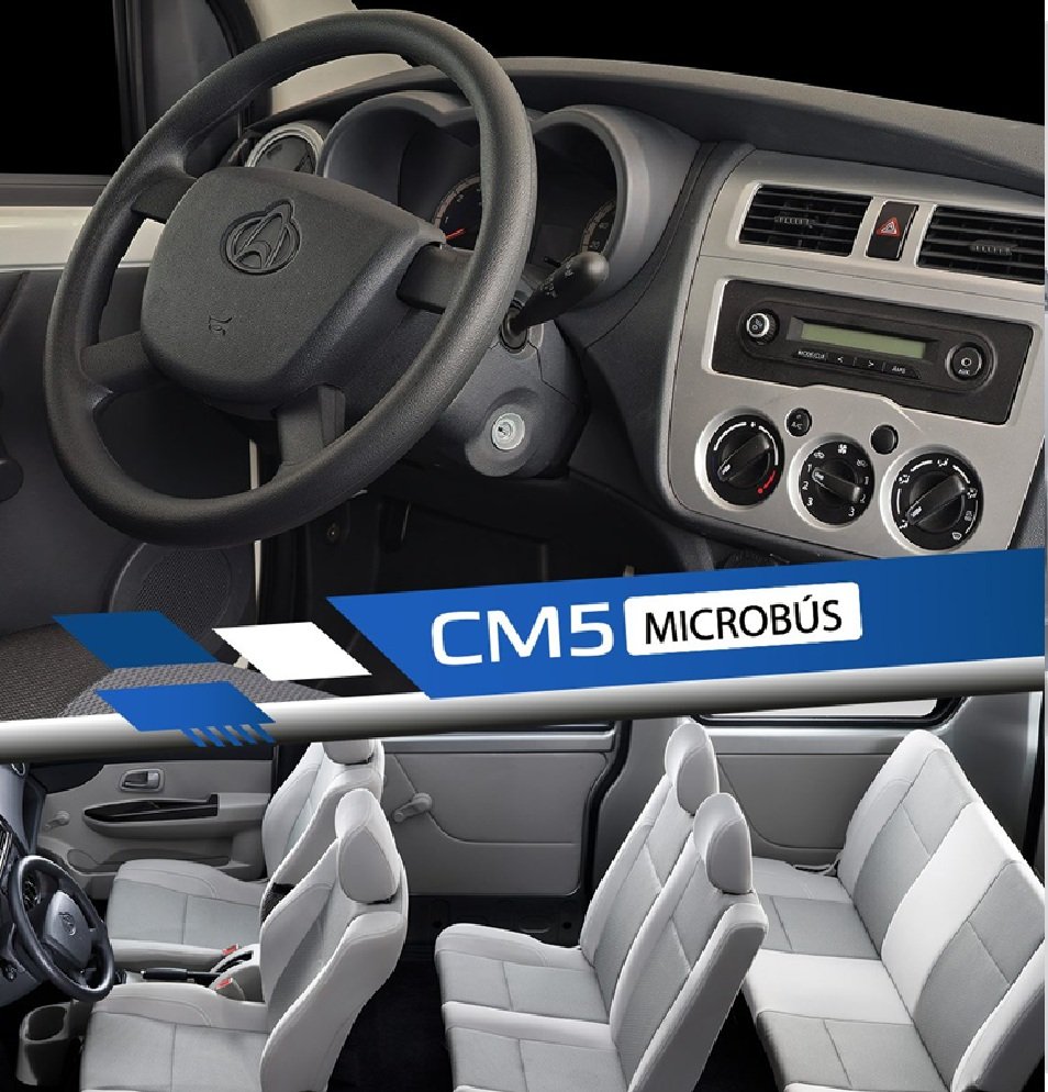 El habitáculo de la CM5 ha sido cuidadosamente diseñado para ofrecer una experiencia cómoda y ergonómica. Con capacidad para hasta 11 pasajeros, el microbús ofrece asientos con buen soporte lumbar, amplio espacio para las piernas y una disposición interior que facilita el acceso y la movilidad dentro del vehículo. Los acabados interiores y los materiales empleados brindan una sensación de calidad y durabilidad, respondiendo a las necesidades tanto del transporte comercial como institucional.