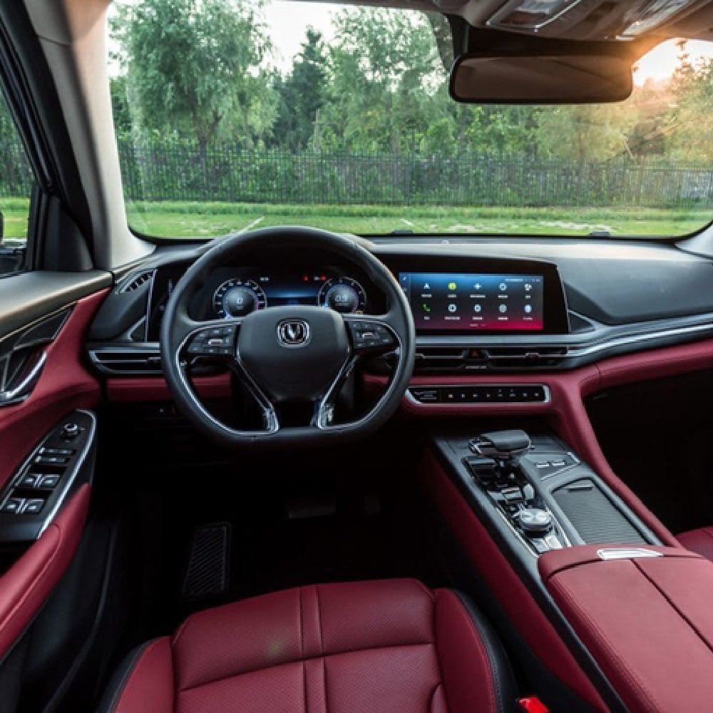 Ofrece un ambiente de lujo con asientos de piel sintética de alta calidad y ajustes eléctricos con memoria. La pantalla táctil de 12.3" con conectividad Apple CarPlay y Changan Link, junto con el sistema de audio SONY® de 12 bocinas, garantizan una experiencia multimedia superior. El cargador inalámbrico de 15W y la iluminación ambiental LED multicolor completan el ambiente de alta gama.